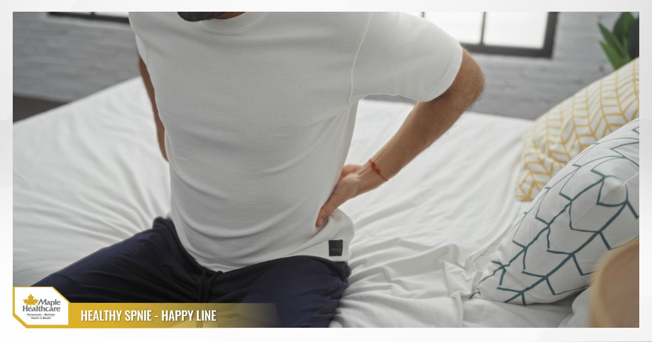 • Morning back stiffness: A feeling of stiffness in the lower back after waking up, lasting for more than 30 minutes. This sensation gradually eases as you start to move.